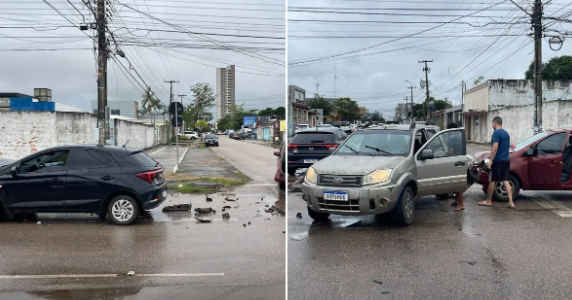 Uma colisão entre três veículos foi registrada na manhã desta quinta-feira na região central de Porto Velho (RO). O acidente envolveu um Ford EcoSport, um Hyundai HB20 e um Fiat Palio, em um cruzamento de vias com grande fluxo de veículos.