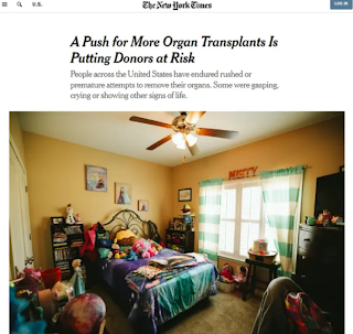 Em julho de 2025, o The New York Times publicou uma reportagem de investigação sobre as práticas de doação após morte circulatória (DCD) nos Estados Unidos. A investigação aprofundada expôs falhas no sistema norte-americano de transplante de órgãos, citando testemunhos de 55 profissionais de saúde em 19 estados e referindo 351 casos, incluindo o de Misty Hawkins, do Alabama, que ainda apresentava batimentos cardíacos depois de ter sido declarada morta, antes da remoção dos órgãos.