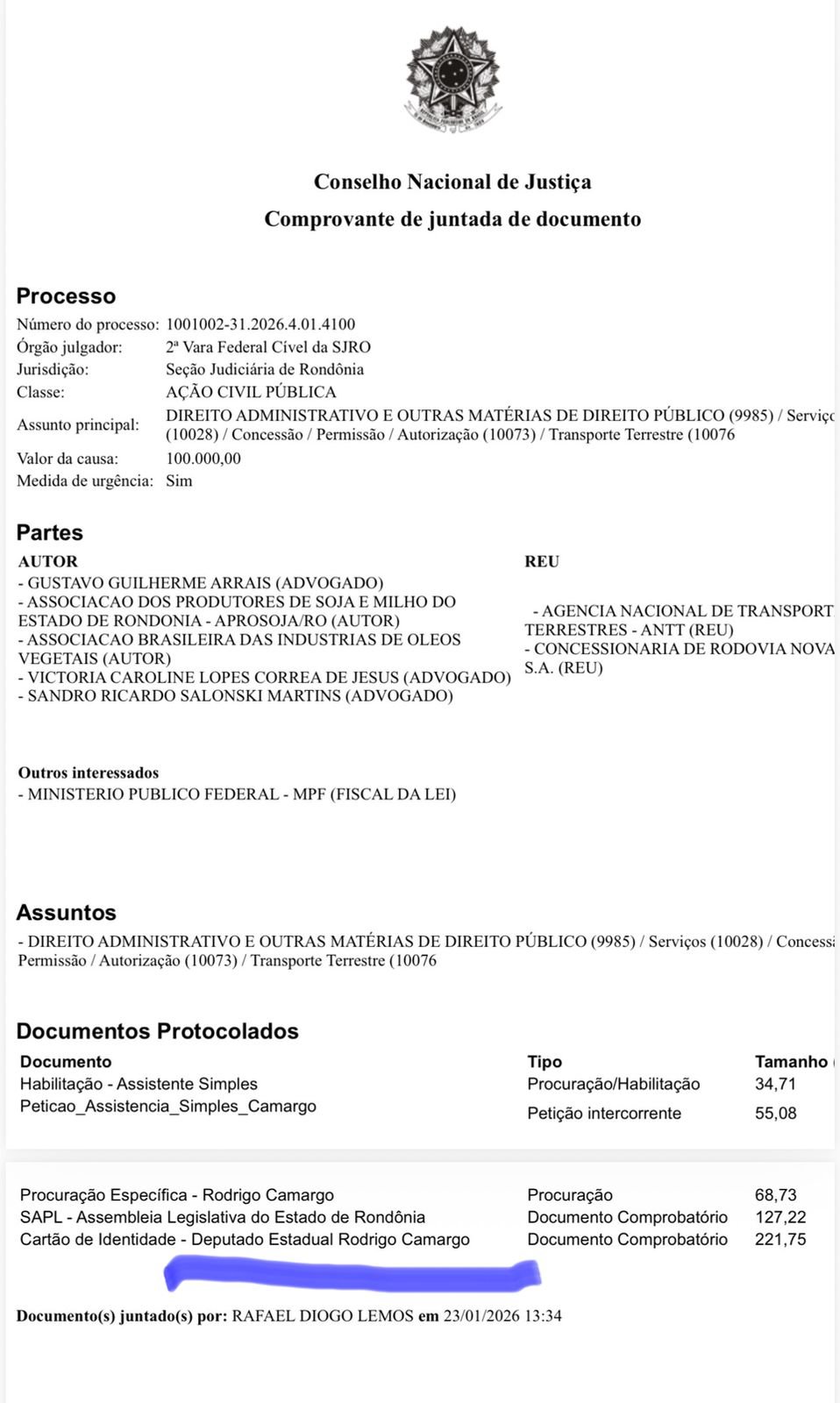 Após a decisão judicial, o deputado se pronunciou em vídeo e destacou que a luta sempre foi em defesa da população. “Eu não aceito — e nunca aceitei — que o povo de Rondônia pague um pedágio tão caro sem nenhuma melhoria real na estrada”, afirmou Camargo. Segundo ele, a cobrança penalizava diretamente trabalhadores, caminhoneiros, produtores e famílias que dependem da BR-364.