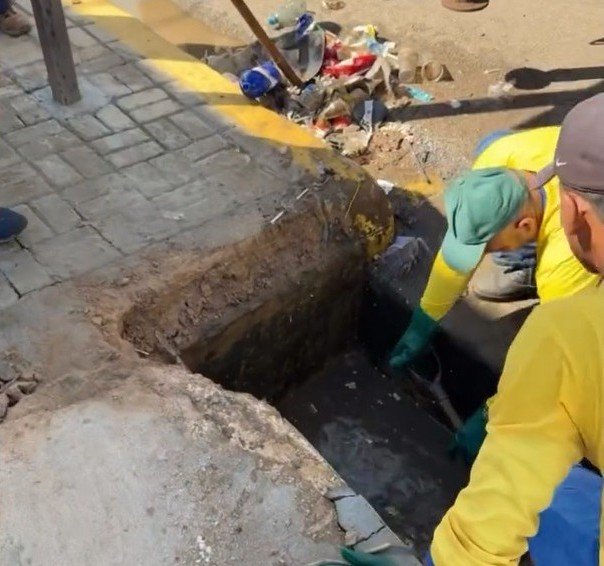 “Realizamos a desobstrução de quatro bocas de lobo. Em uma delas encontramos uma madeira que obstruía o duto. Em outra, grande quantidade de sedimento”, afirmou o secretário-executivo de Serviços Básicos, Giovanni Marini.