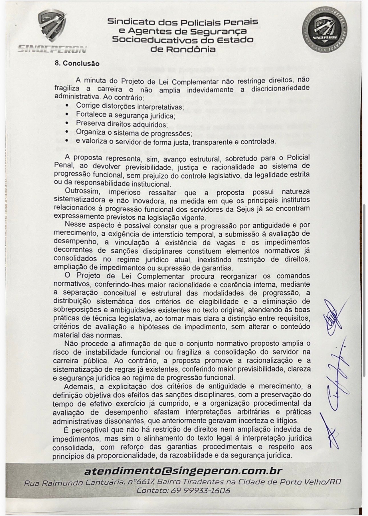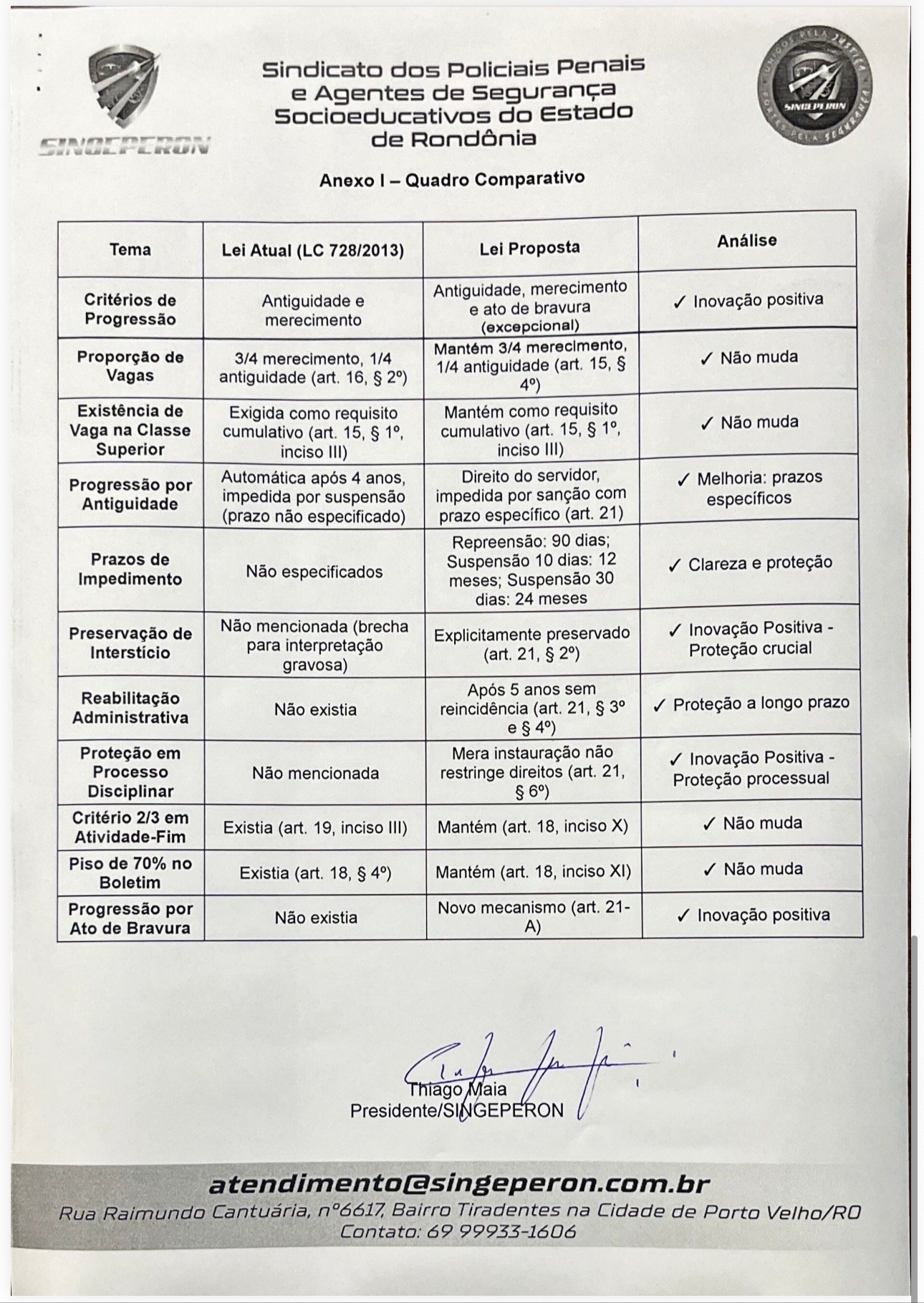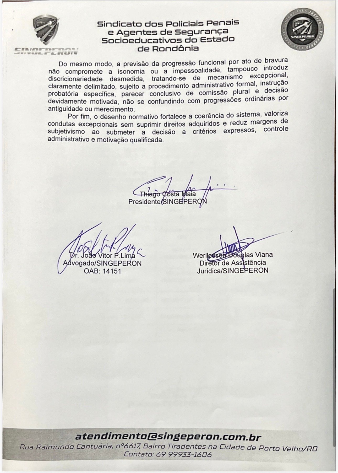 O SINGEPERON reforça que o projeto valoriza a carreira, fortalece direitos e traz mais justiça e clareza ao sistema de progressão funcional.