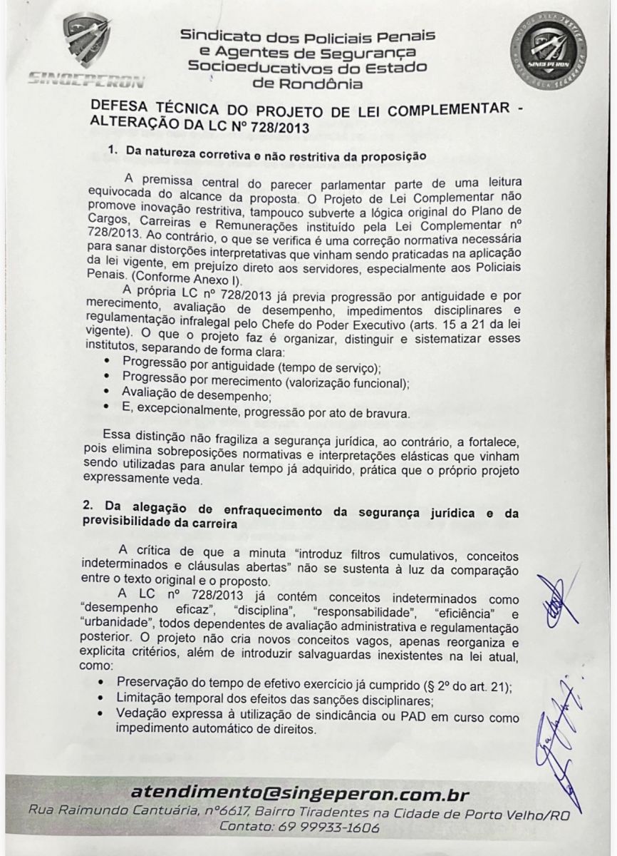 O SINGEPERON esclarece que o Projeto de Lei Complementar que altera a LC nº 728/2013 não retira direitos, não fragiliza a carreira e não cria punições automáticas para os Policiais Penais e Agentes Socioeducativos.